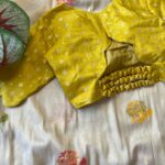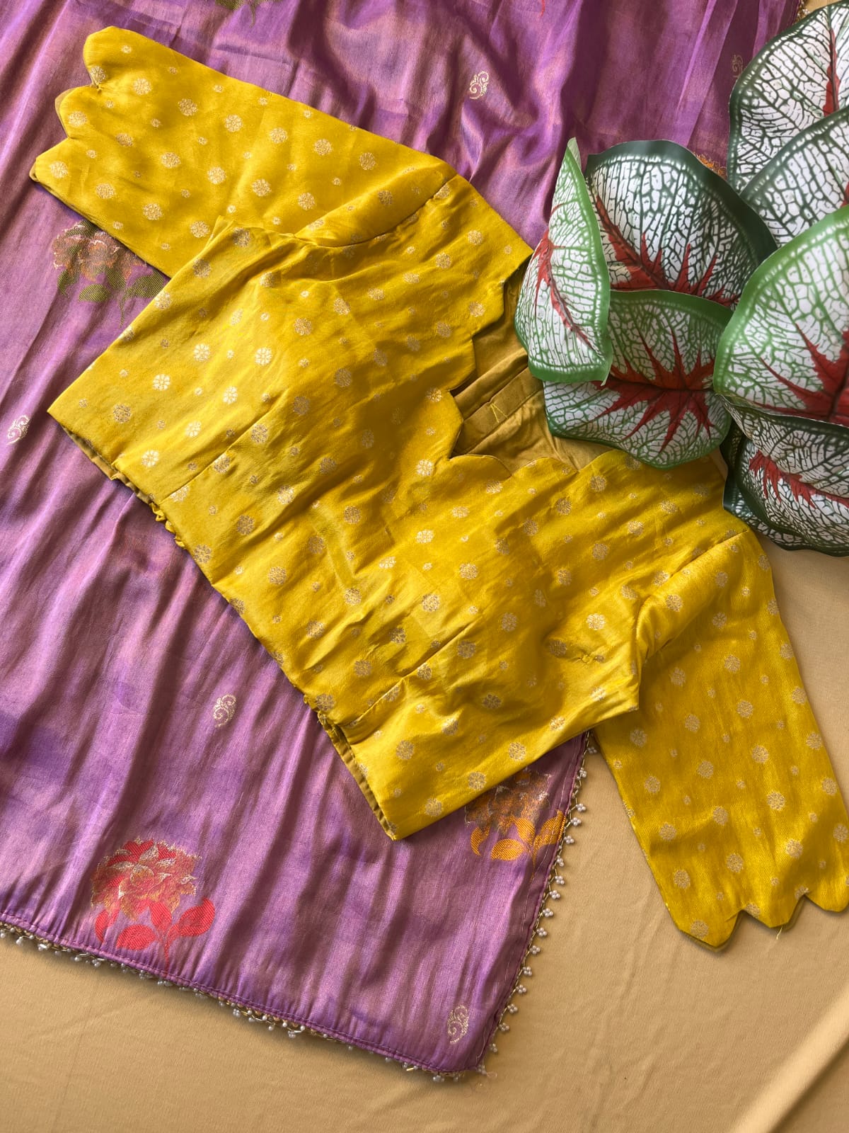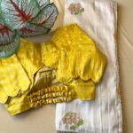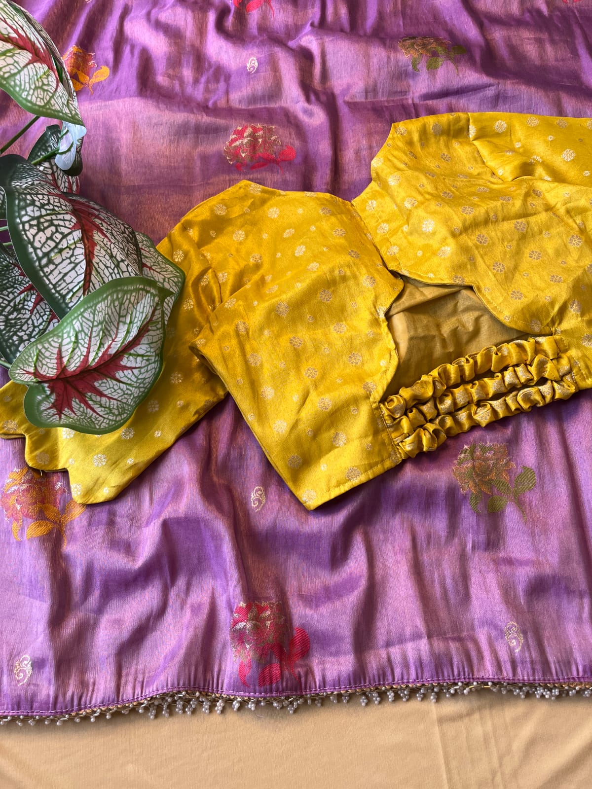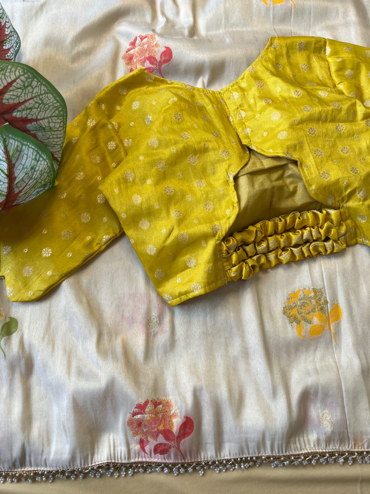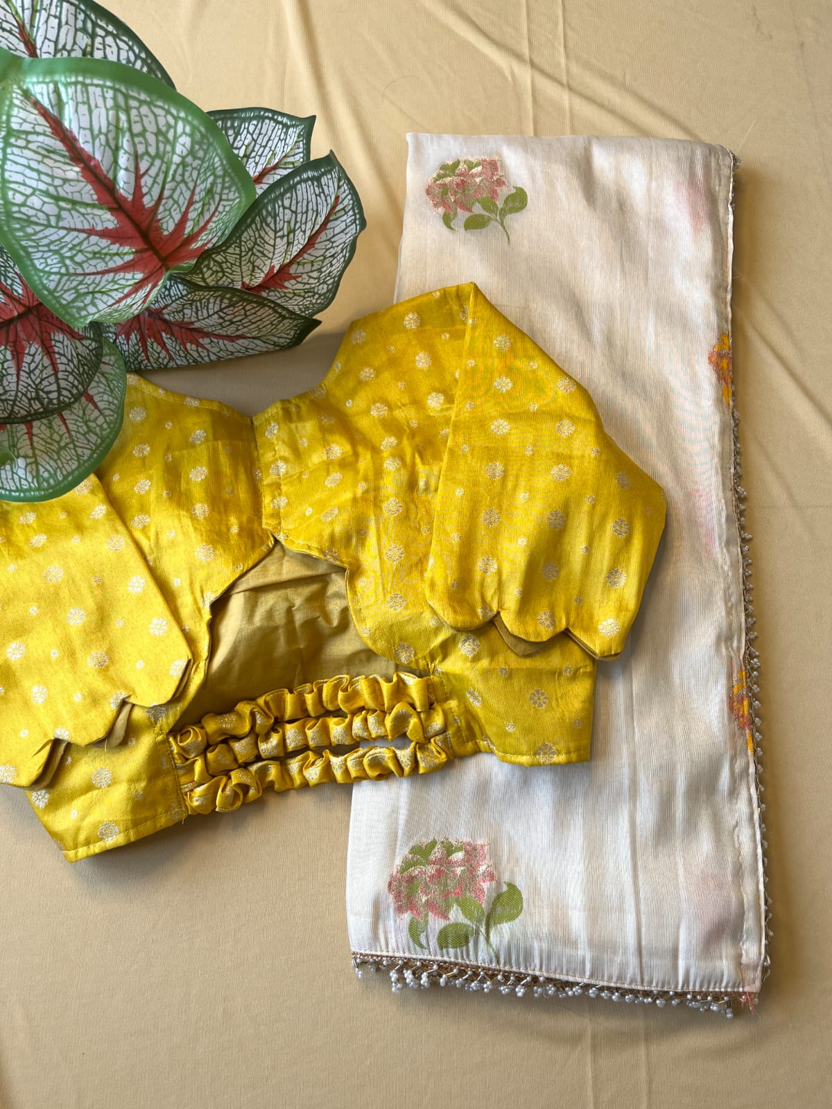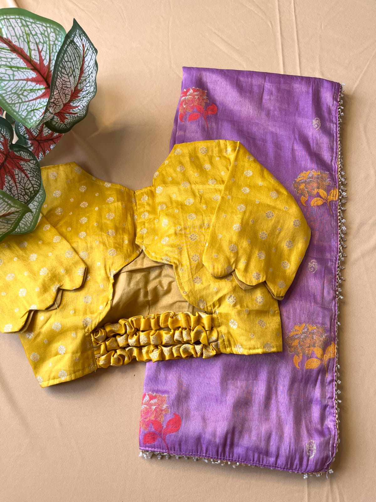 Blouse measurements :- Fully stitched size 40 with trending scalloped and frill designs