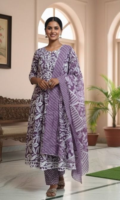 jaipur cotton Anarkali Kurti Set – kurti pant and dupatta