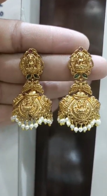 Traditional charm meets elegant craftsmanship in these latest Buttalu earrings, designed with detailed temple patterns and delicate pearls.