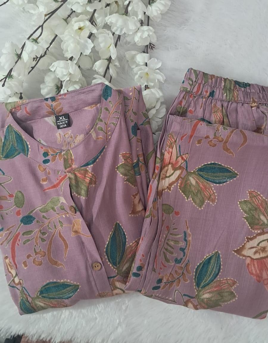 Effortless style meets all-day comfort with this floral printed Vatican co-ord set. A ready-to-wear outfit perfect for work, outings, and everyday wear.