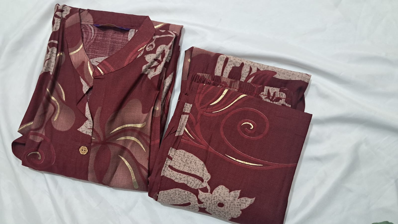 - Colour: Wine with Beige Floral Print