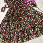 full stiched pure cottan silk febric with top same as pic heavy digital print work full flair same as pic and video.(Sleeve have ilastic finishing)