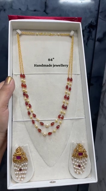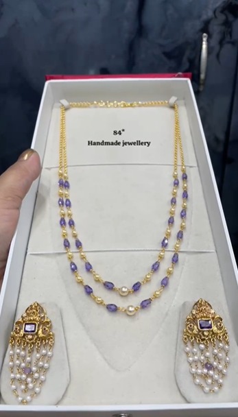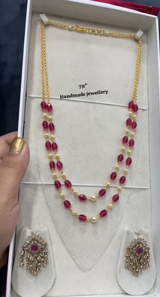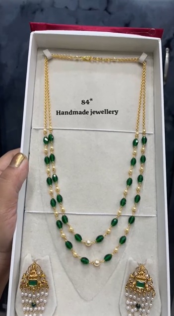 Elegant and stylish CZ Beads Necklace designed in a beautiful double-layer beads pattern with a rich gold tone finish. This lightweight jewellery set adds a graceful traditional touch and pairs perfectly with sarees, kurtis and Indo-western outfits.