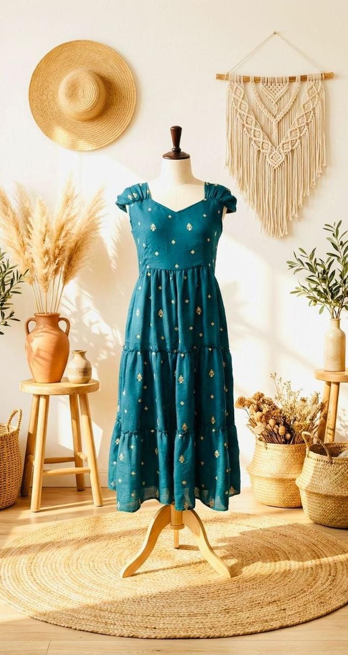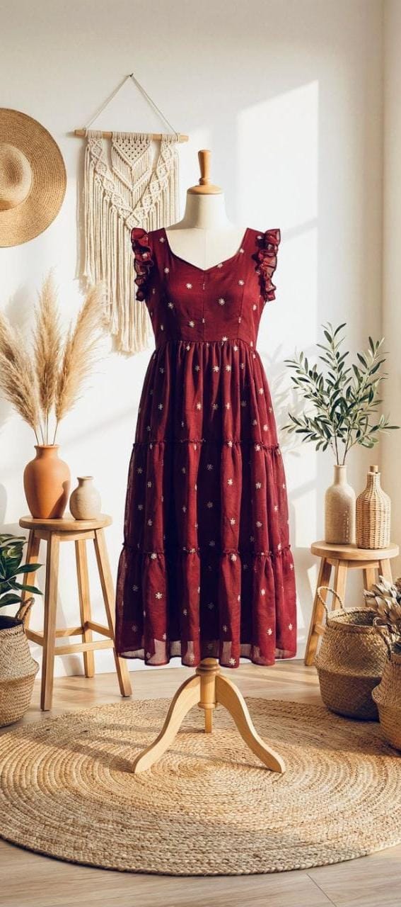 Celebrate this joy of dressing in the best way 🍑 Here presenting you a beautiful and comfortable maxi for the upcoming season with beautiful Alliums Flowers All Over 😍😍 And Beautiful Neckline and Slevees Pattern 💗