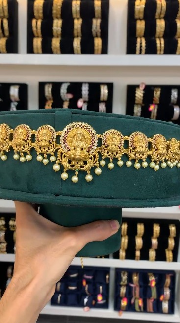 dd a royal touch to your ethnic attire with our elegant hip belts for women, featuring antique gold detailing and temple-inspired motifs.