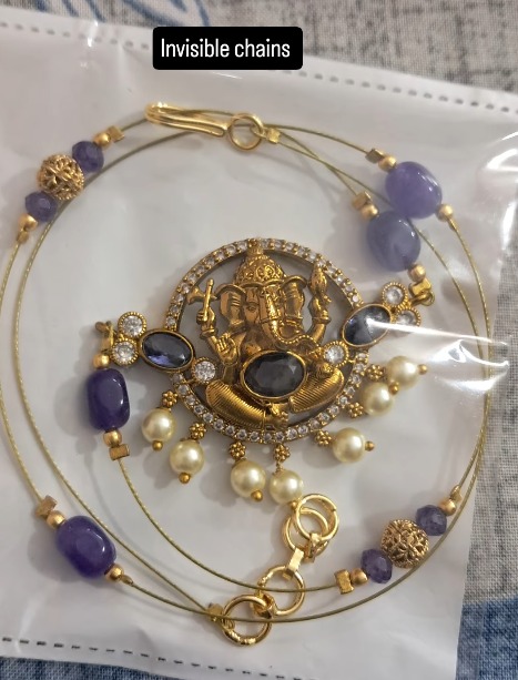 Grace your look with this Invisible Chain Set, highlighted by a Lakshmi pendant,