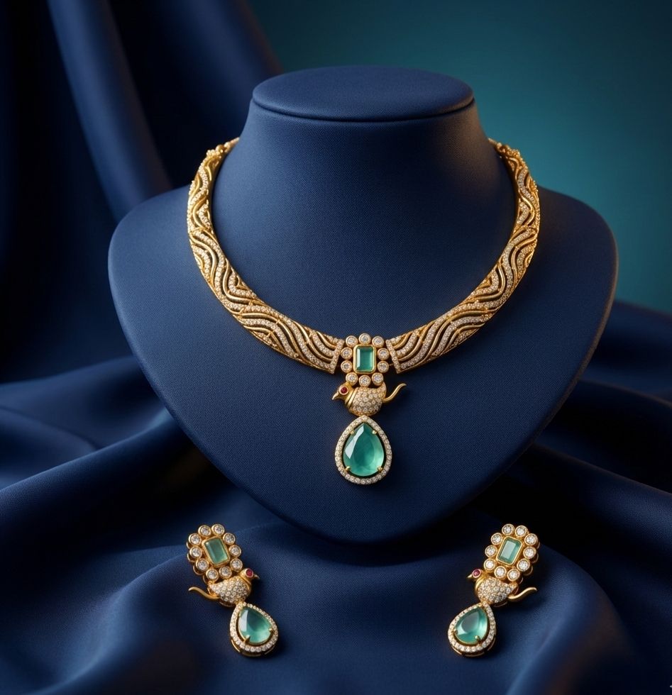 💚 Royal Emerald ,Red , purple , pink , green Look Necklace Set 💚