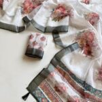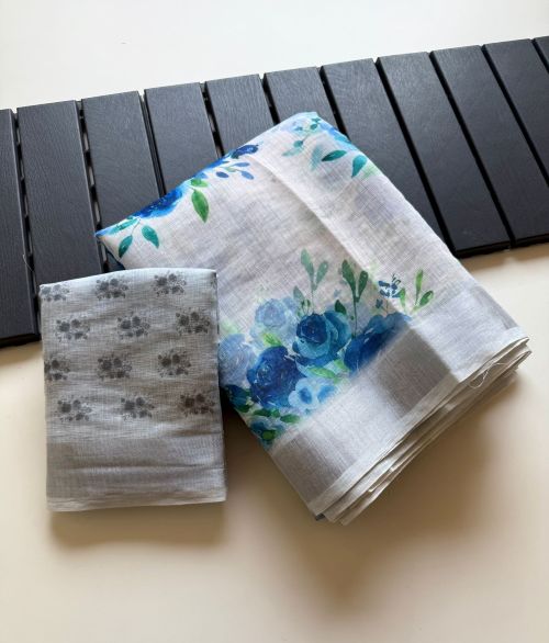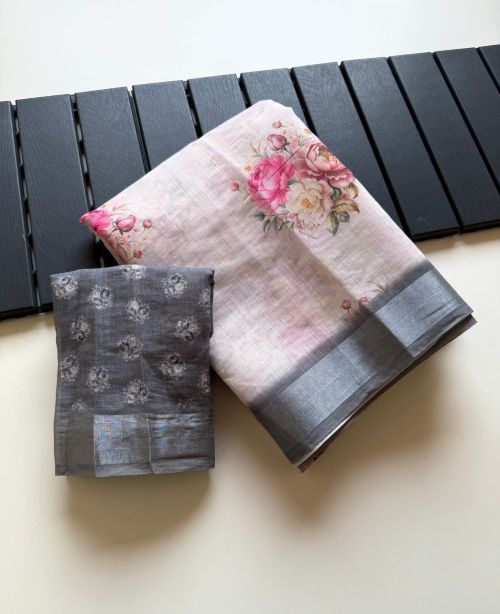 ▶️ Fabric – Soft Linen Fabric With Jaquard Weaving Bordar And Beautiful Floral Digital Print And Fancy Latkan With Printed Running Blouse👚