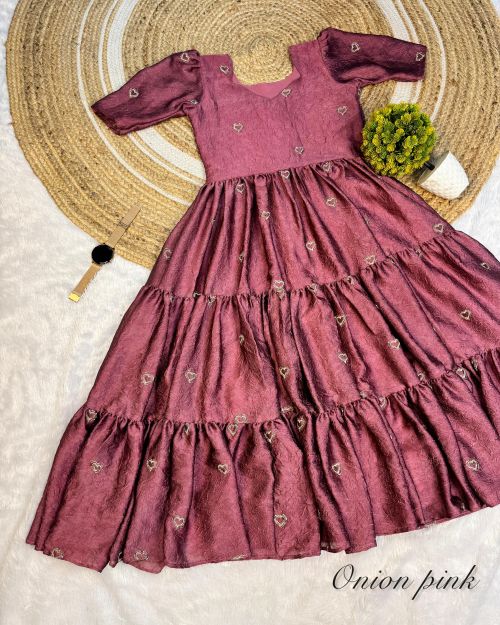 Designed to Make you feel Like a Queen. This perfect gift for your this heart’ gown made with premium blooming Rangoli crush silk fabric With beautiful heart beads and embroidery work all over gown(sk)
