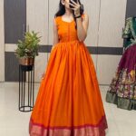 Gown:- fully stitched jacquard weaving 8 inch broad border, Dola metric checks silk long gown with koti