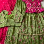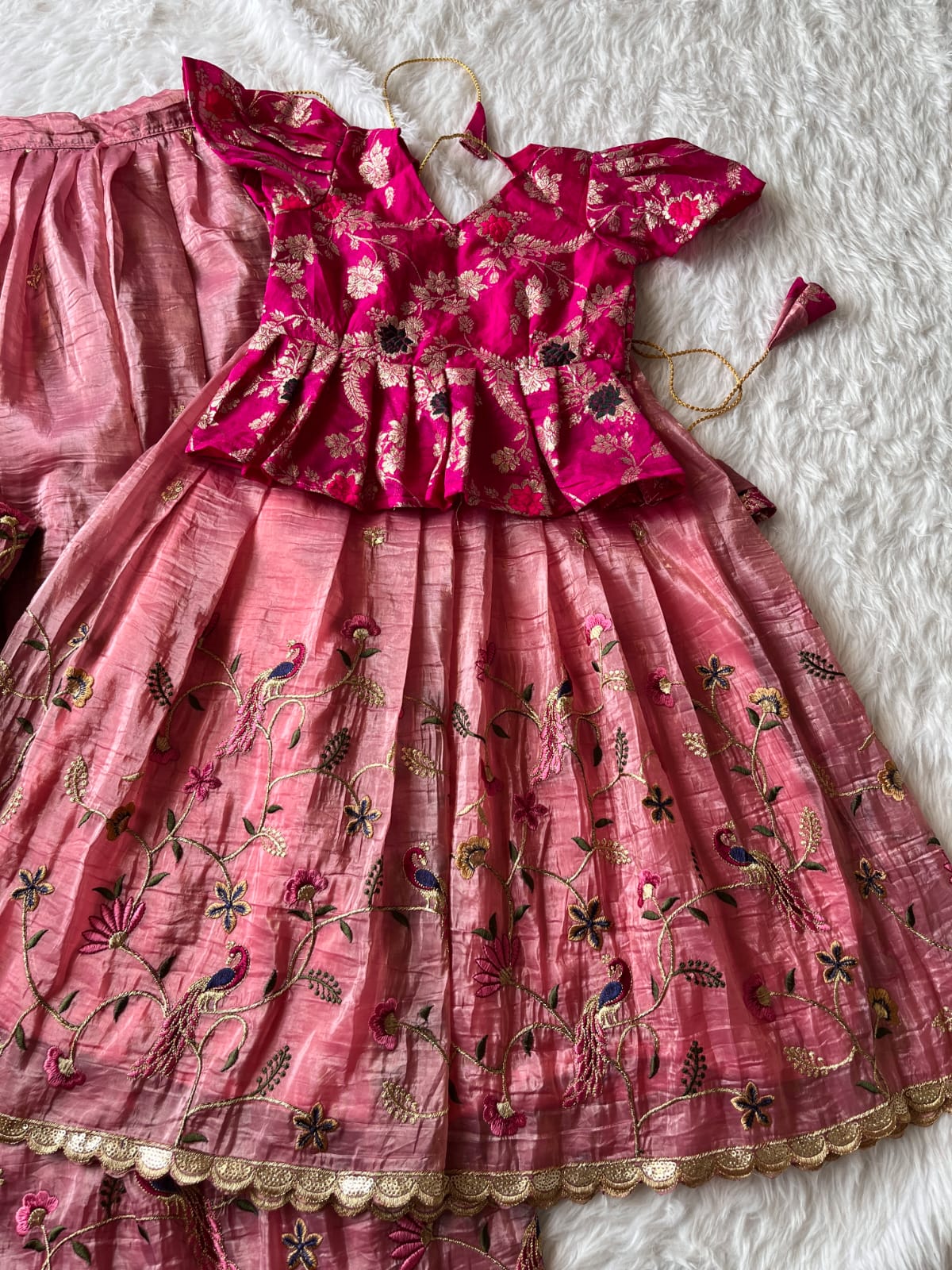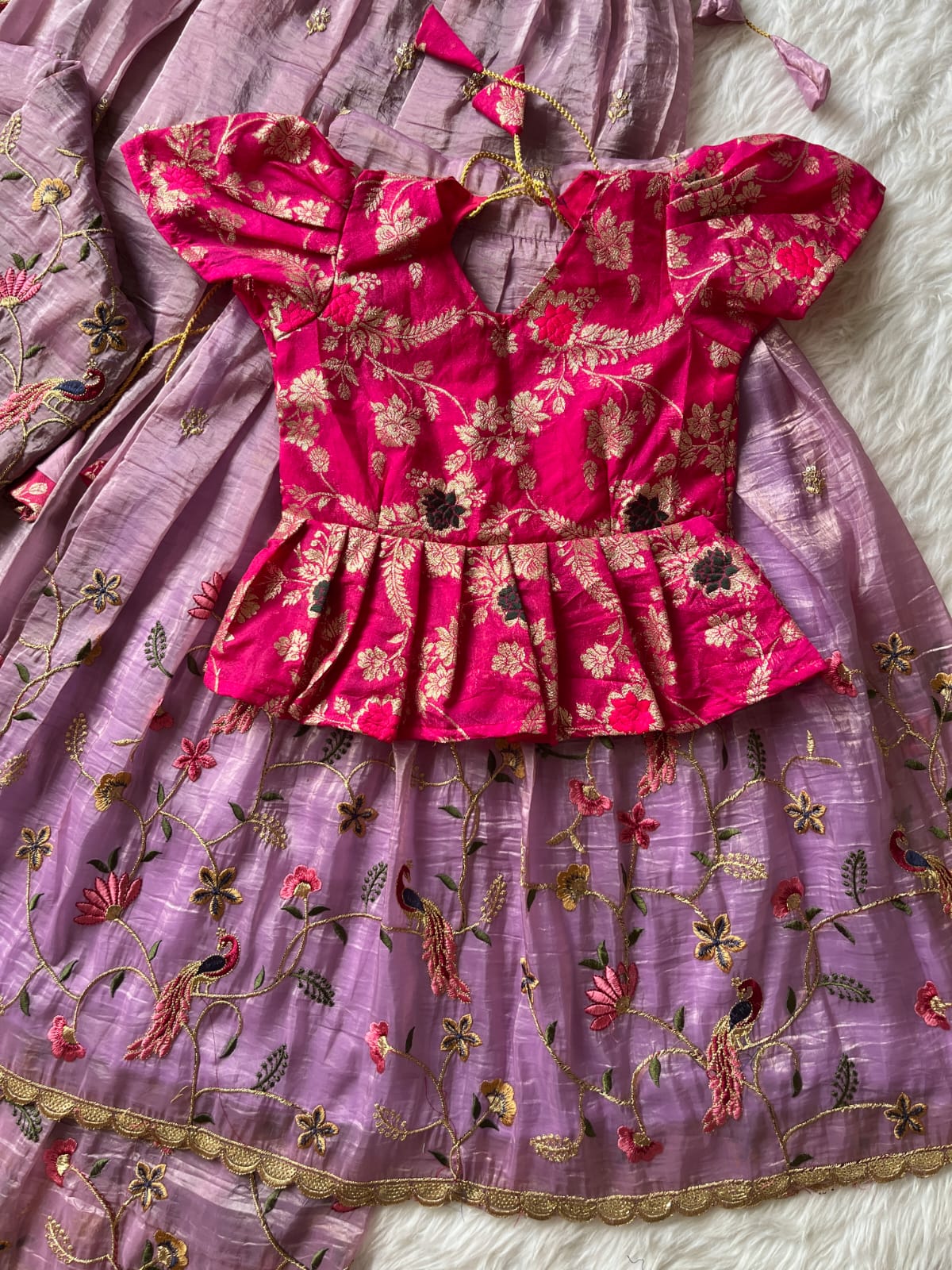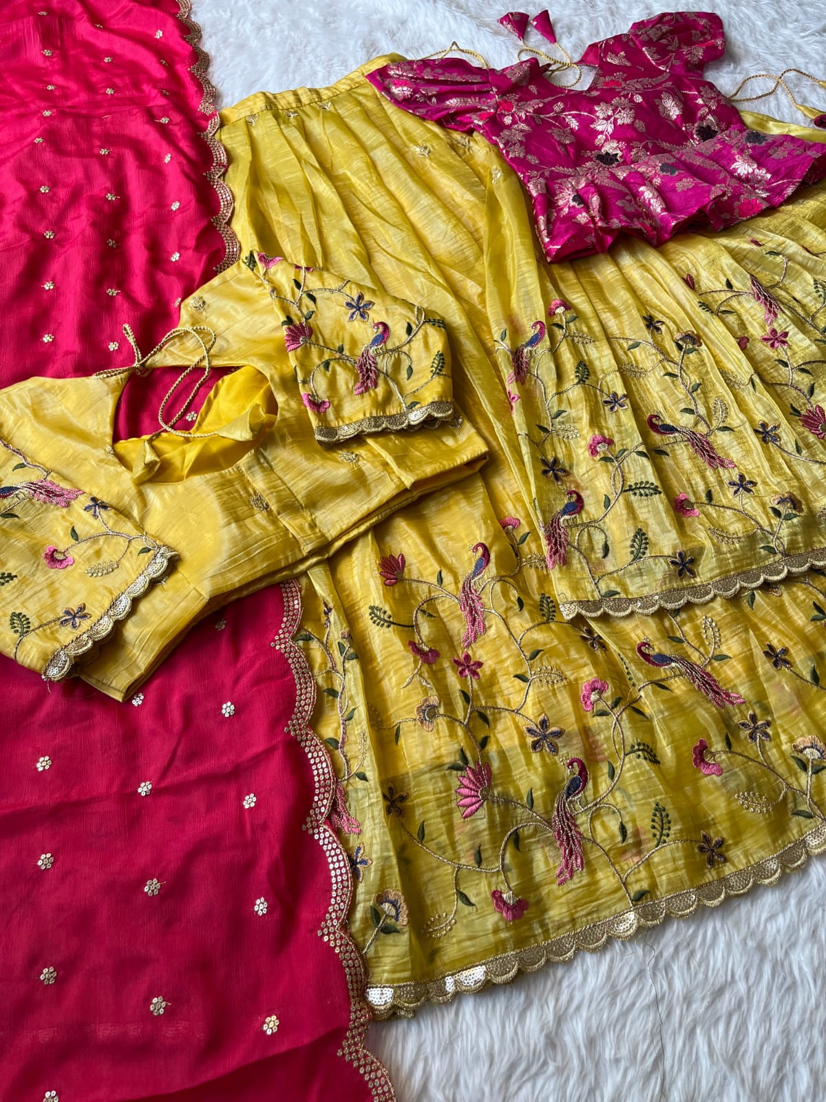 Mom & Daughter Lehengha Fabric – Gold crush with peacock embroidery work