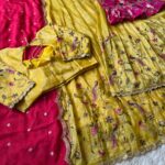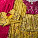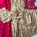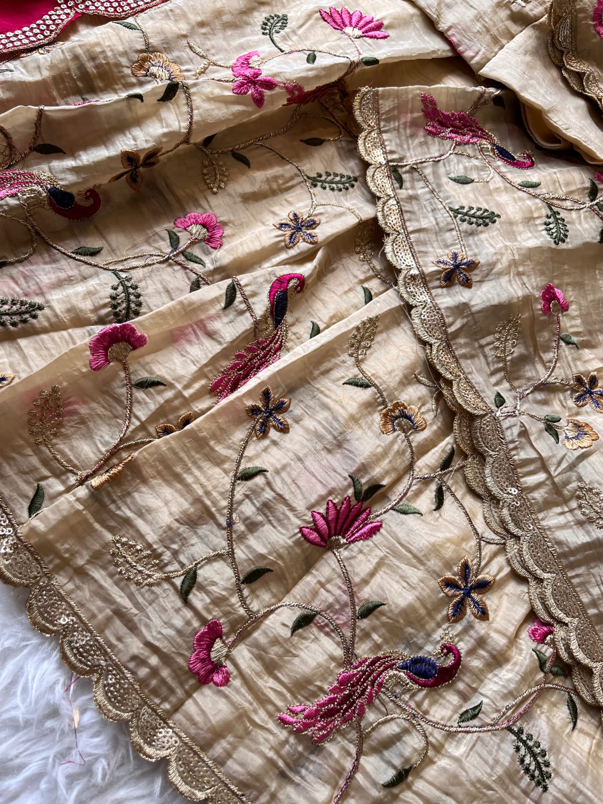 Mom Blouse :- Gold crush with embroidery ( with chinnon silk embroidery scalloped Duppta )