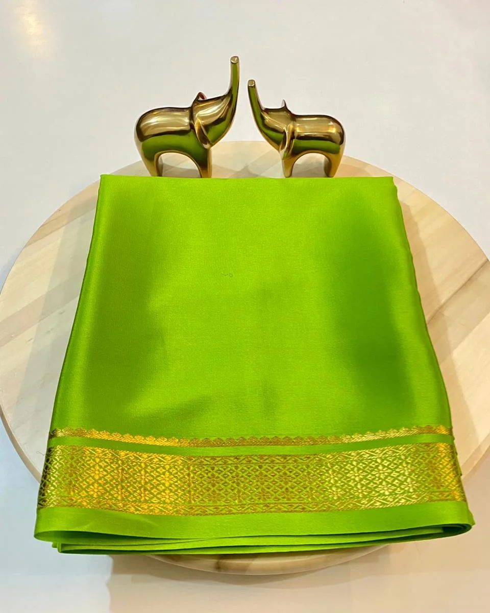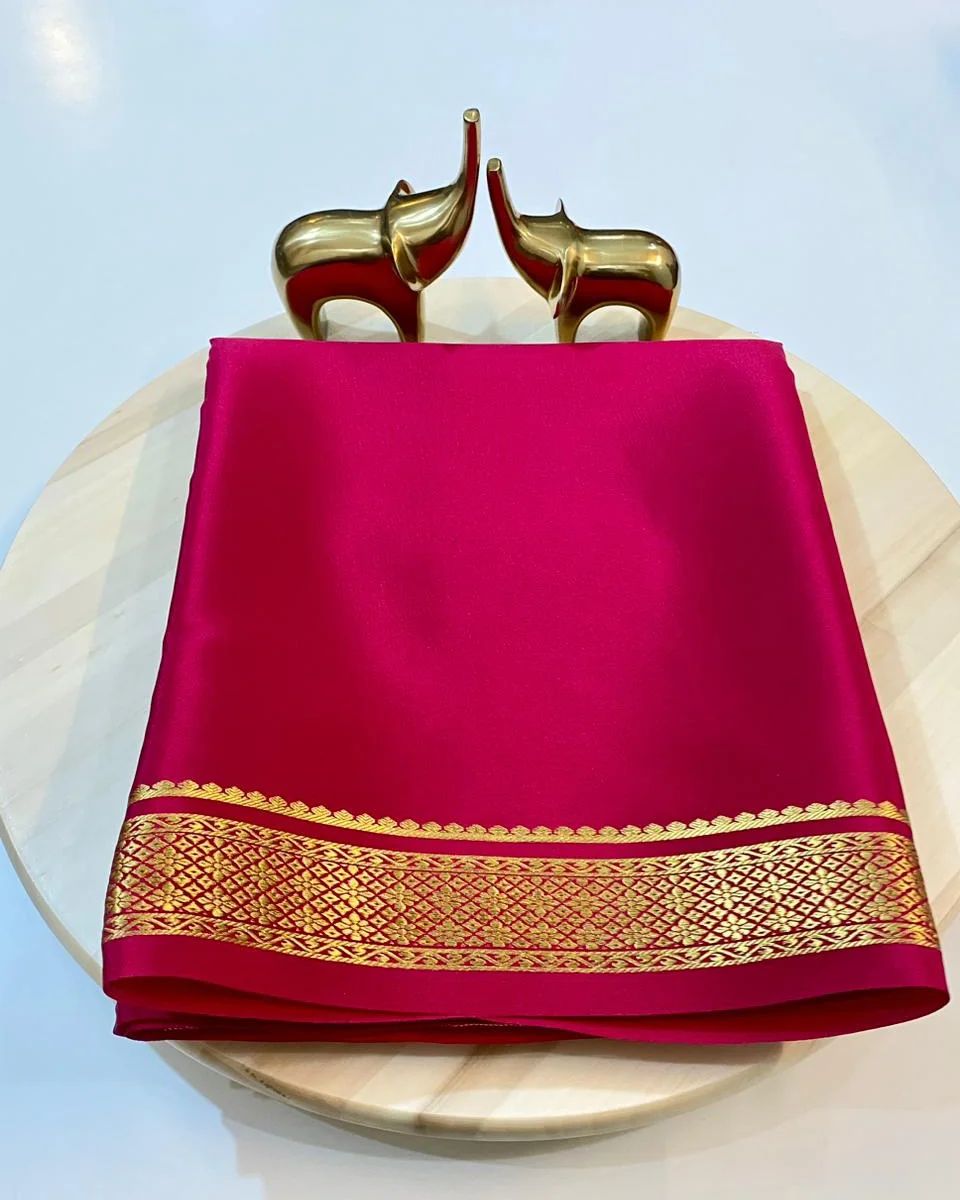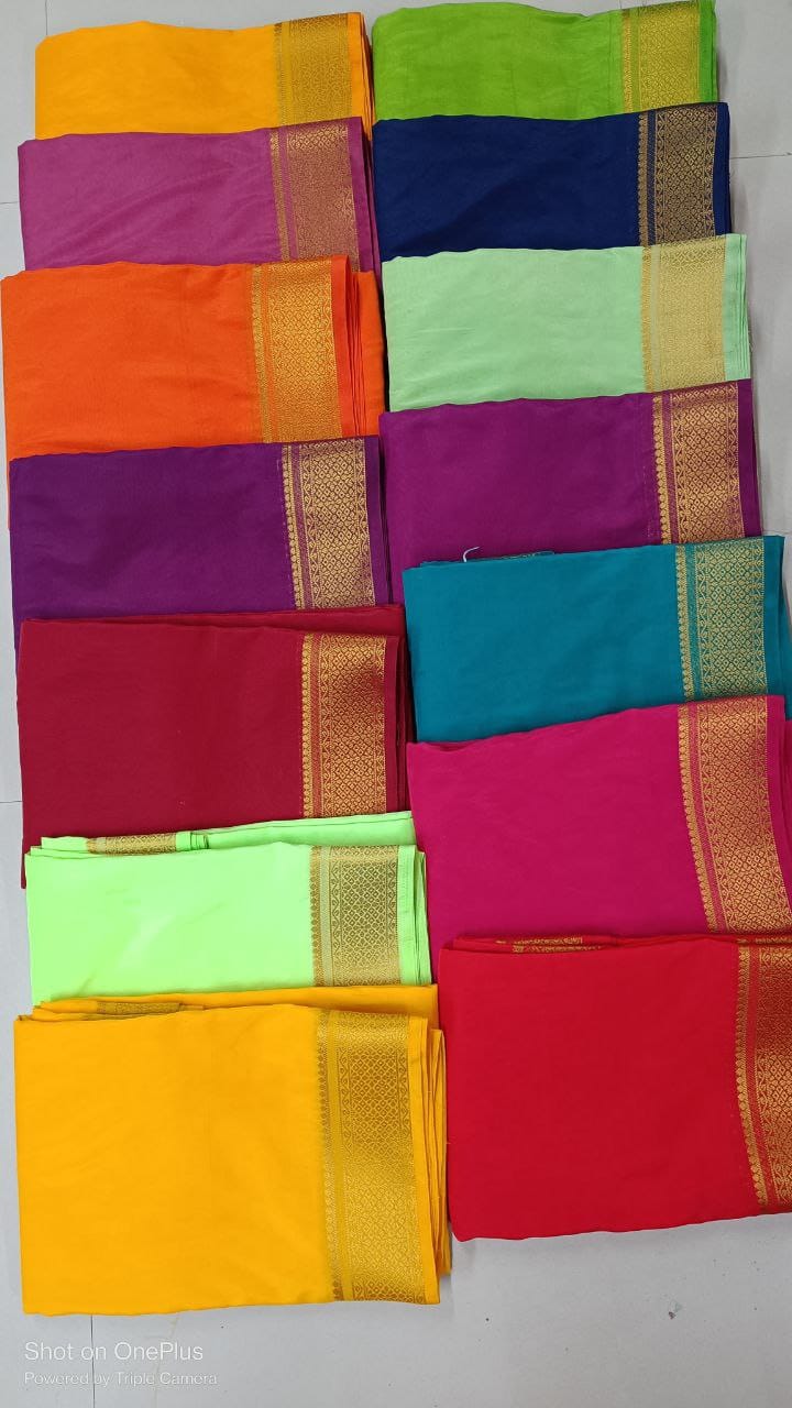 🔥 *Semi Mysore Crape silk 3/3 Fancy Border Sarees 🔥*