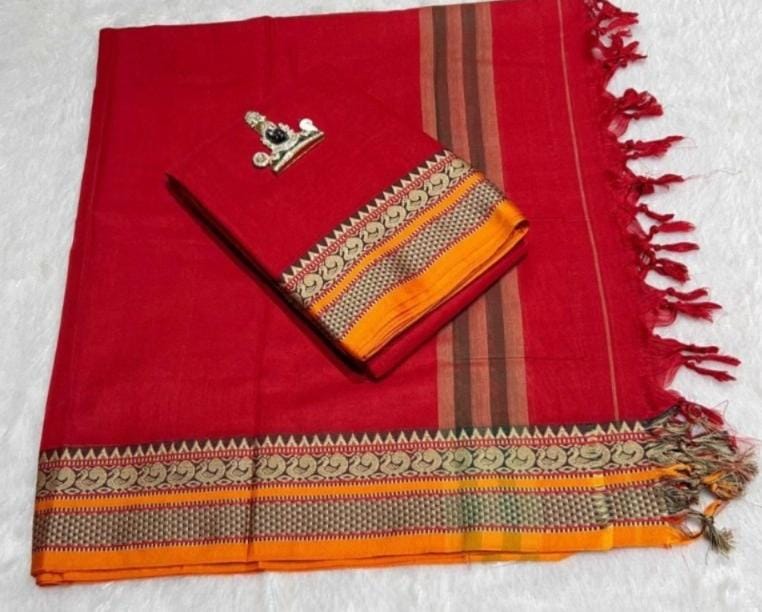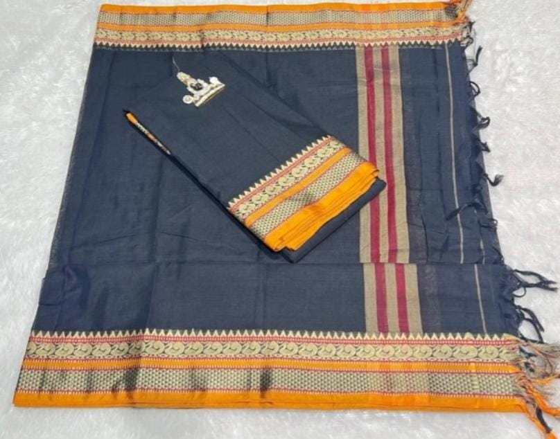 Traditional Narayanpet dress material crafted in pure fine soft cotton with a classic Vasantha border. Designed for comfort and everyday elegance, this unstitched set allows you to tailor it to your perfect fit and style.