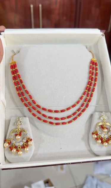 • Pagadala jewellery with triple-layer red bead design