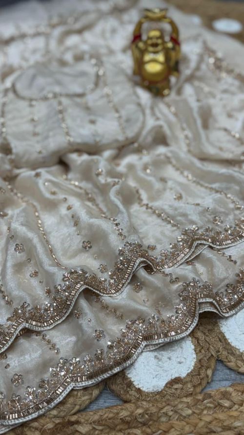 On pure space silk sarees in velvet shine adorned with sequence and cutdana delicate handwork
