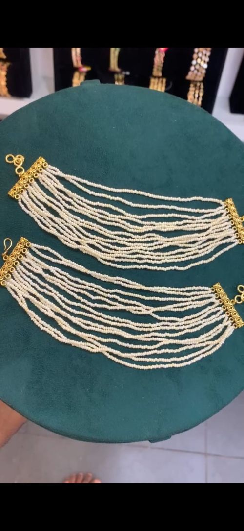 Elevate your traditional look with these elegant multi-layer Pearl Ear Chains. Designed with delicate seed pearls woven into long, flowing layers, this pair adds a graceful charm to any ethnic outfit. The ear chains feature a premium gold-finish top hook that attaches easily to your jhumkas or studs, giving a fuller and richer bridal appearance.