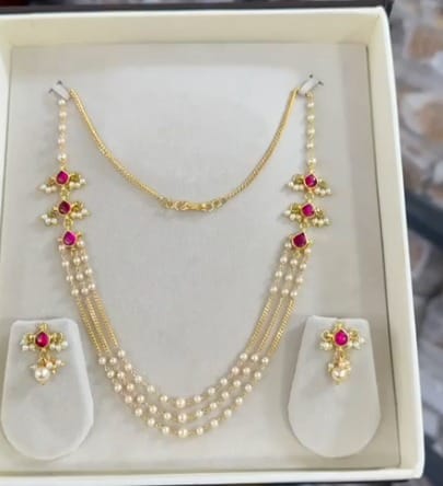 Add elegance to any occasion with our stunning Pearl Necklace Set. Featuring high-quality pearls and a matching necklace and earrings, this set complements both traditional and modern outfits. Perfect for weddings, parties, or everyday wear, it’s a timeless addition to your jewelry collection.