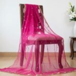 Elevate your look with this elegant organza pink dupatta featuring delicate floral butti work and a beautifully hand-embellished golden border. Lightweight, crisp, and perfect for pairing with suits, lehengas, or everyday ethnic wear.