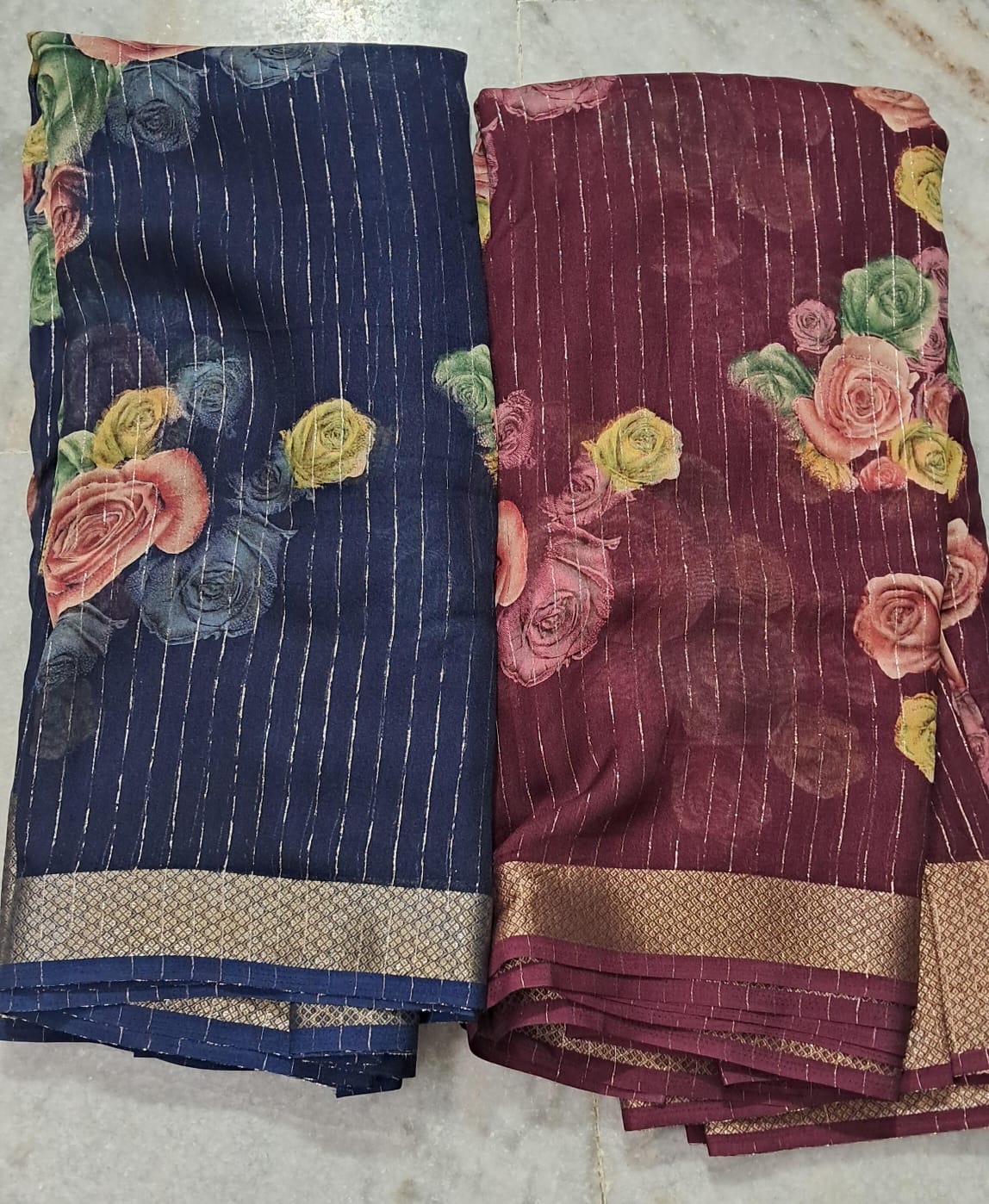 Pure chiffon sarees online with soft, flowy fabric and elegant floral prints. Lightweight, easy to drape, and comfortable for daily wear or small occasions. Finished with a rich border for a graceful look.