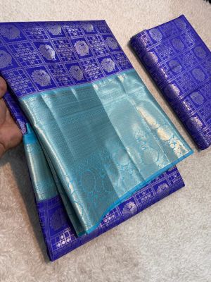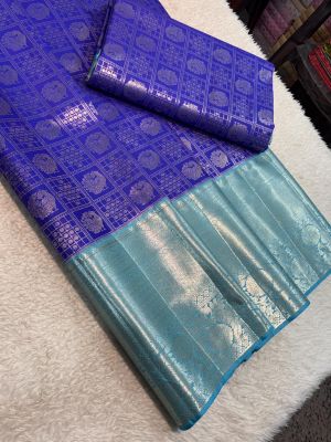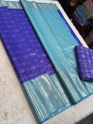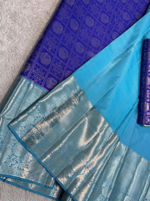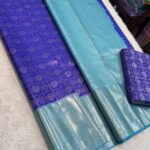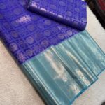 Royal Blue saree with a beautiful Teal contrast pallu and blouse.
