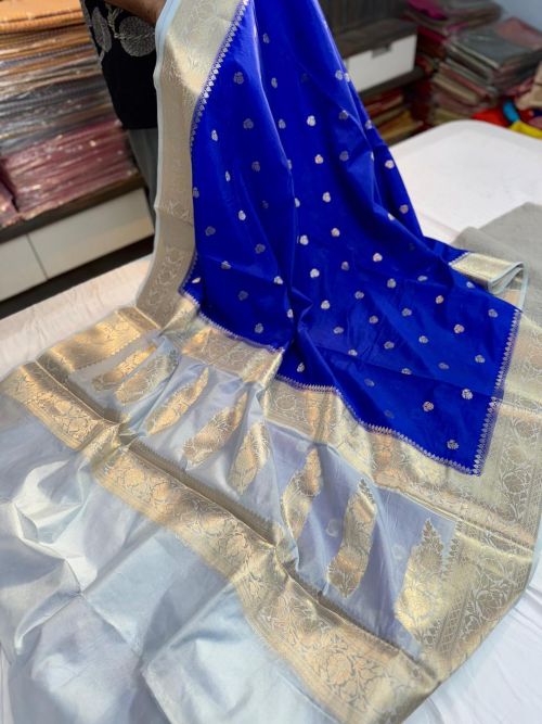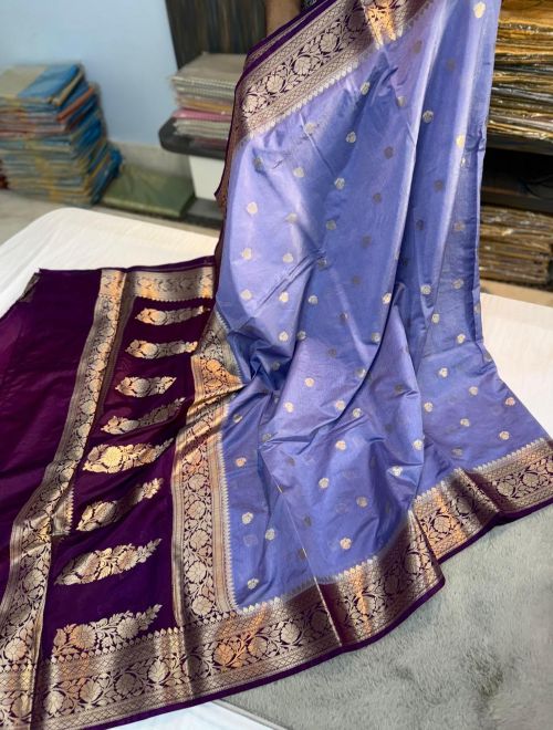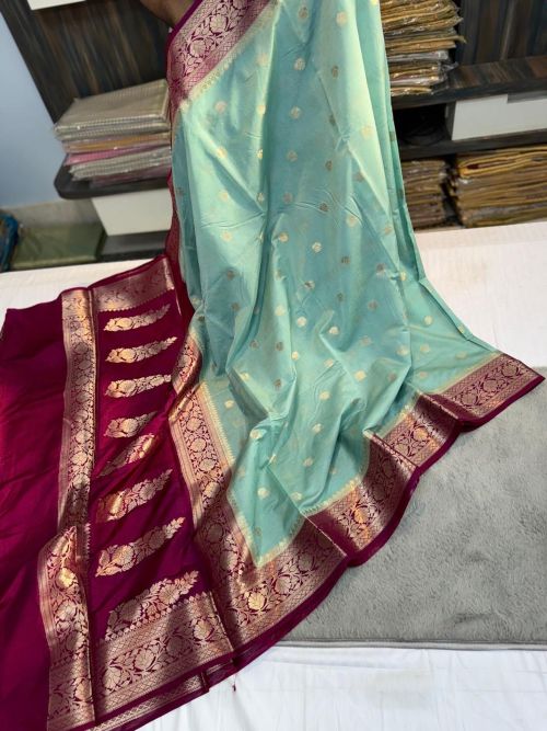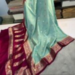 Elegant contrast Banarasi border design 🌸