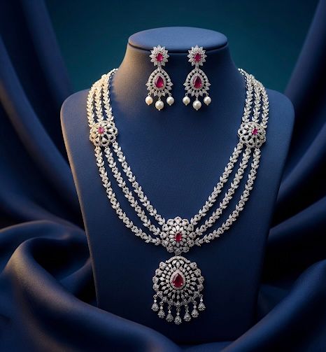 Paired with matching earrings, this set blends classic elegance with modern finesse. The silver polish finish gives it a premium look while remaining lightweight and comfortable for long wear. Perfect to style with sarees, lehengas, and festive outfits, this necklace set adds effortless sophistication to any ensemble.