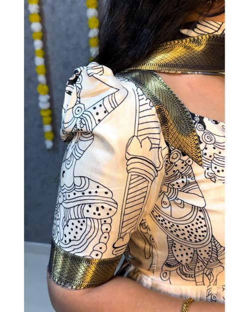A graceful Kalamkari Anarkali Recreation crafted in soft, lightweight dola silk for easy and comfortable wear. Designed with a 3-meter flare, classic kalamkari print, and Mangalgiri lace detailing on the sleeves and Anarkali border.