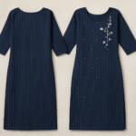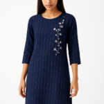 Upgrade your everyday style with this elegant piece from our tops for women collection. Made with soft breathable fabric, this knee-length top features sleek pinstripes, delicate floral embroidery, and a flattering fit.