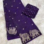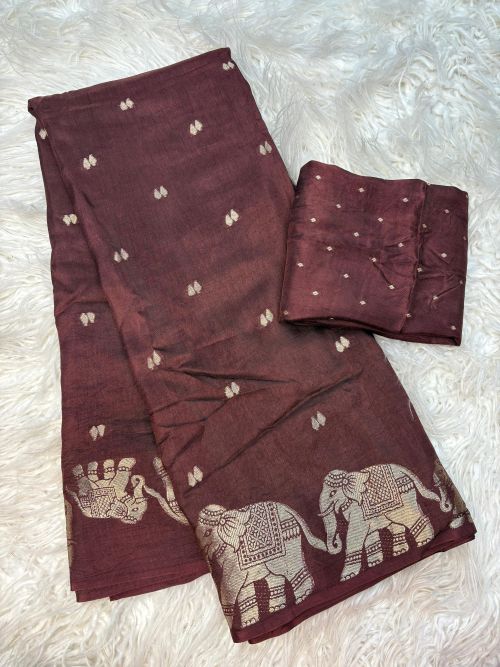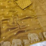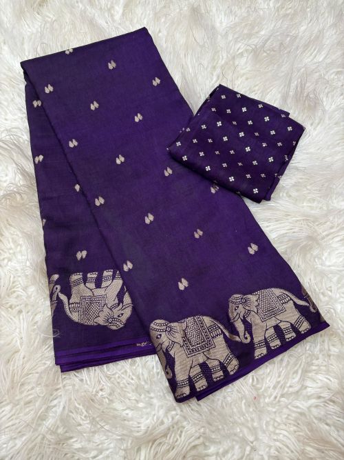 Pure Russian dola fabric with beautiful elephant 🐘 figure in saree border with running Zari chitt pallu pair with viscose jacquard blouse