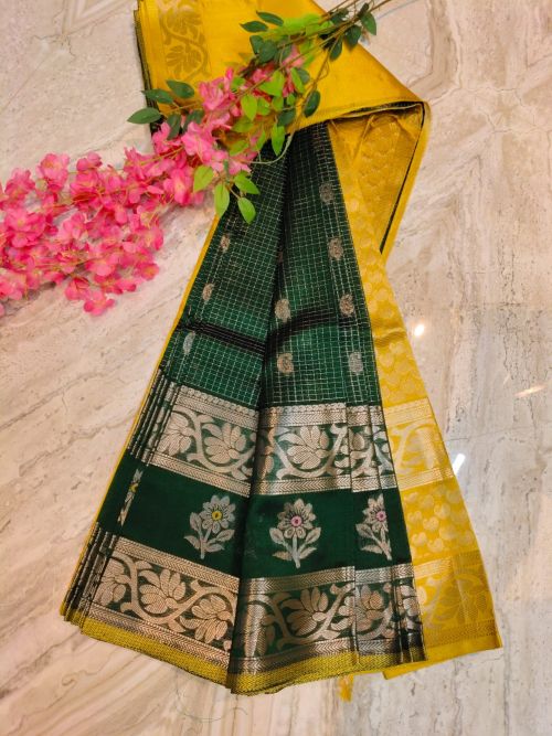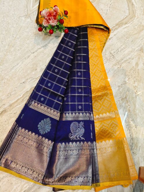 😍Pure Handloom venkatagiri Sarees With Step by step weaving with allover small zari checks nd motiffs weaving concept